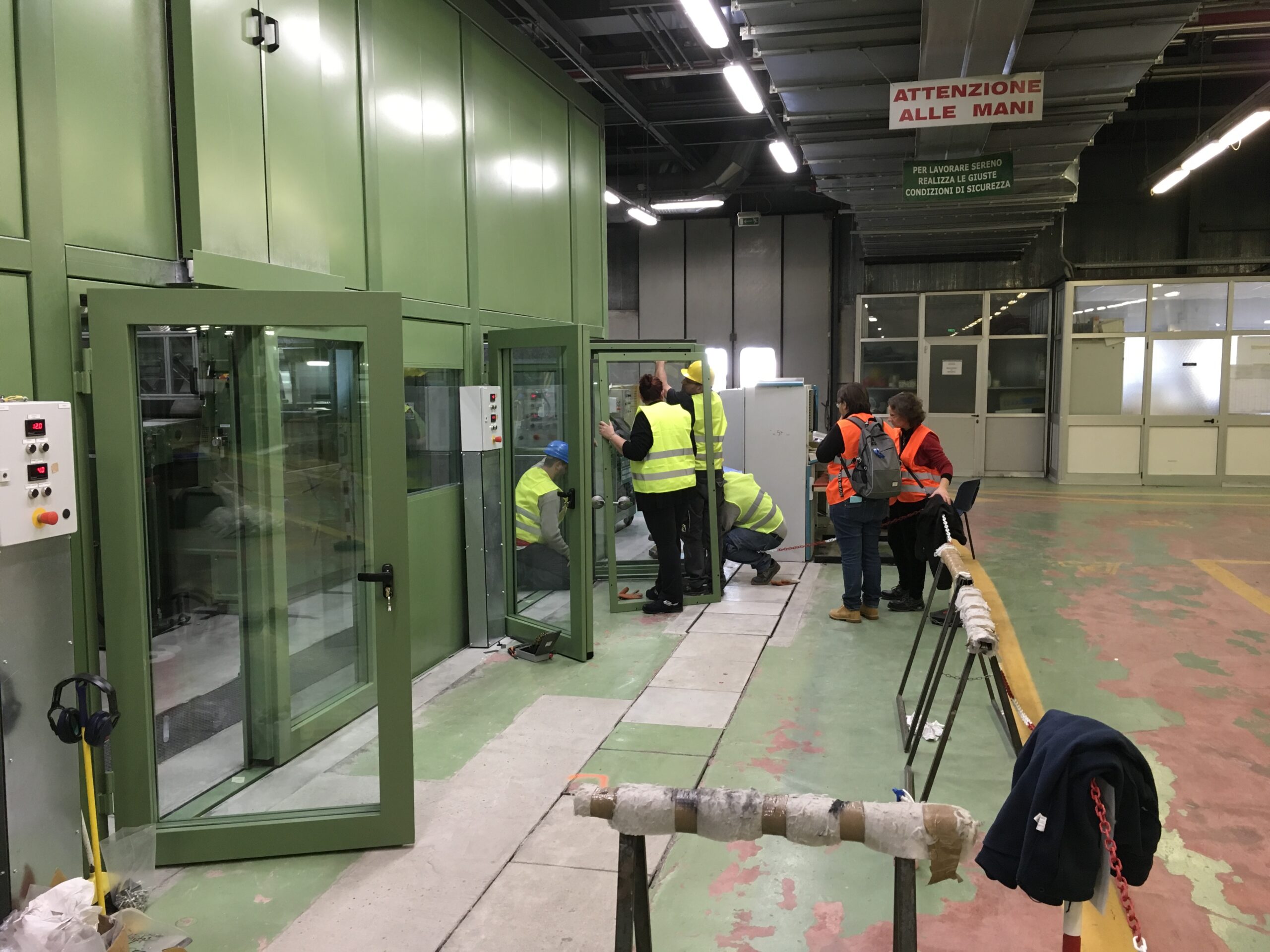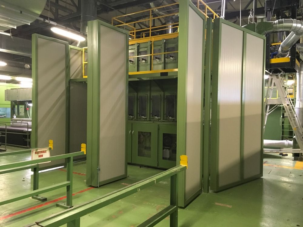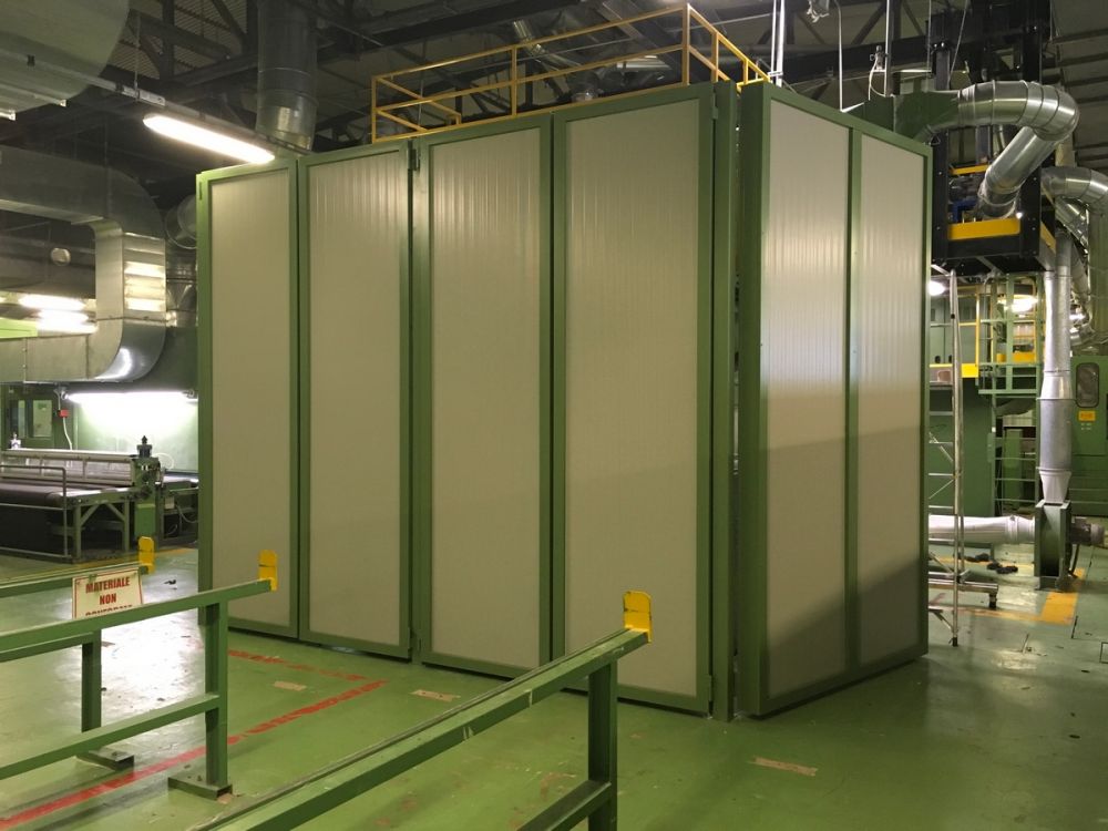 BoXy a réalisé des cabines insonorisées sur mesure pour Alcantara S.p.A. à Narni, en intégrant les lignes de production et en résolvant les problèmes d’interférence acoustique. Les cabines, d’une longueur maximale de 47 mètres, comprennent 36 portes d’inspection et plus de 30 panneaux vitrés fixes, garantissant l’accessibilité et la visibilité.